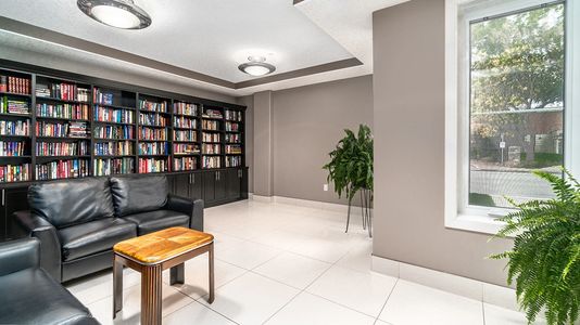 Enter Terrace East through a luxurious foyer. This space sets the impressive ambiance found throughout the building. This area is beautifully decorated and complete with plush seating.